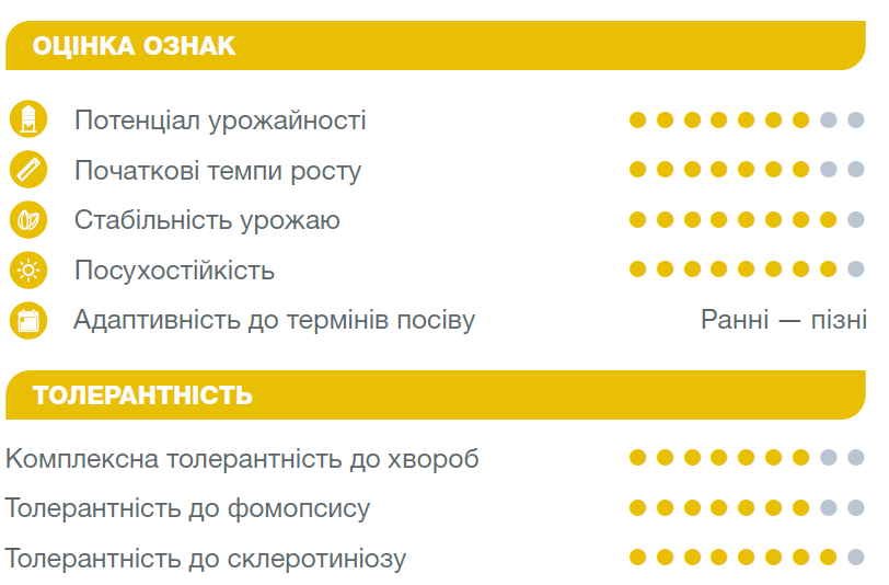 - Гарна пластичність до термінів посіву — можна сіяти в оптимальні строки або трохи змінювати залежно від погодних умов.